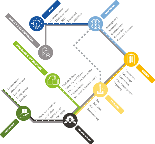 Men vi stannar inte här. Varje plastprodukt kan förbättras eller utökas med nya funktioner eller nya material. Kanske behöver dina kunder ytterligare dokumentation för att följa nya regler. Vi ser slutdestinationen som en plats för att utforska nya territorier och en naturlig utgångspunkt för en ny resa.